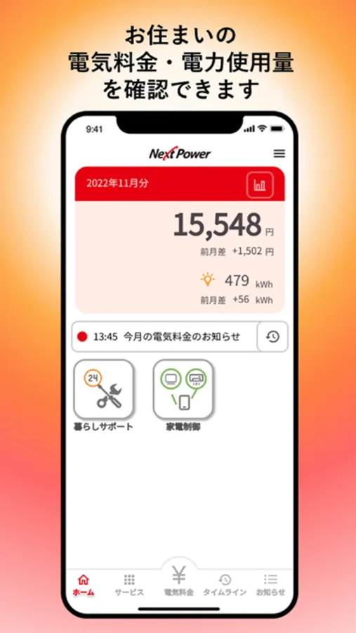 Next Powerの電気をご利用のお客さま向けのアプリです。