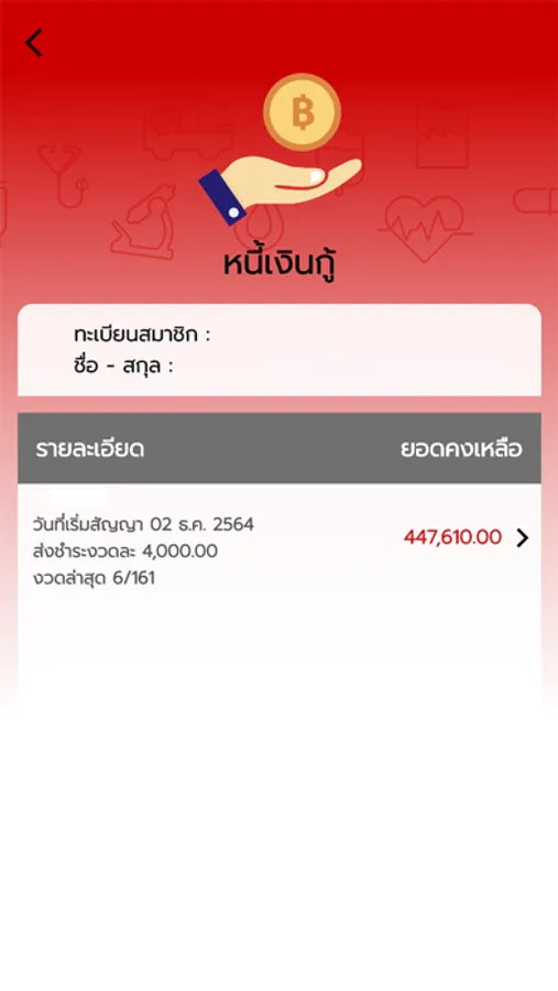 - ยอดคงเหลือสินเชื่อ และรายการเคลื่อนไหวของบัญชี