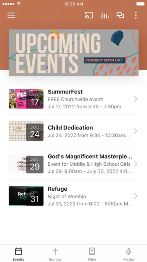 This app will help you stay connected with the day-to-day life of our church. With this app you can: watch or listen to past messages; stay up to date with push notifications; access important upcoming dates and connection opportunities; share your favorite messages, and download messages for offline listening.