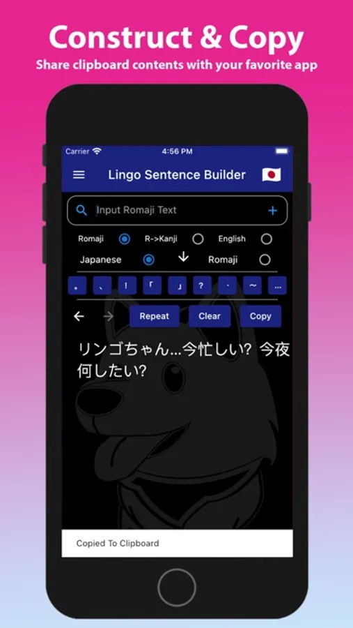 • Copy your creation to the device's clipboard using Lingo's Copy button.