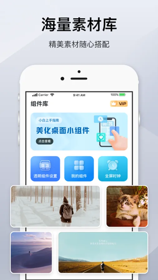 海量精美组件素材,风格多样,ins风、小清新、优美风景,总有一款适合你。