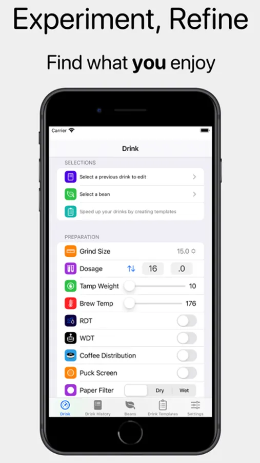 - "Drink History" to easily display each drink and inform you on where you did well and maybe where you didn't do so well :)