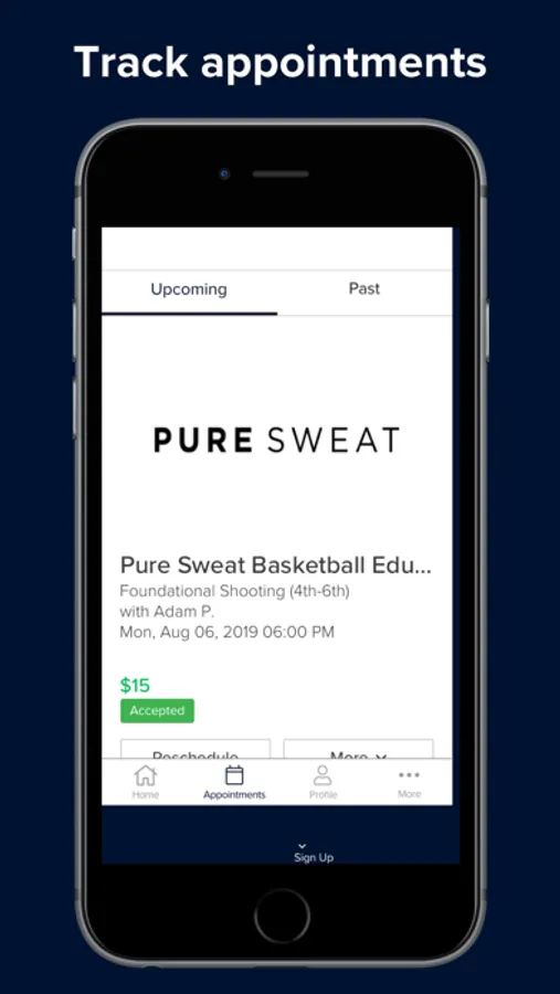 With the Pure Sweat Basketball Education Center mobile app, booking classes in the Crystal Lake, IL area is easier than ever!