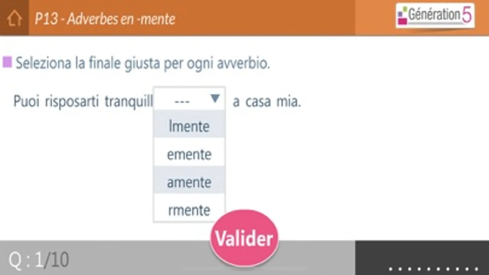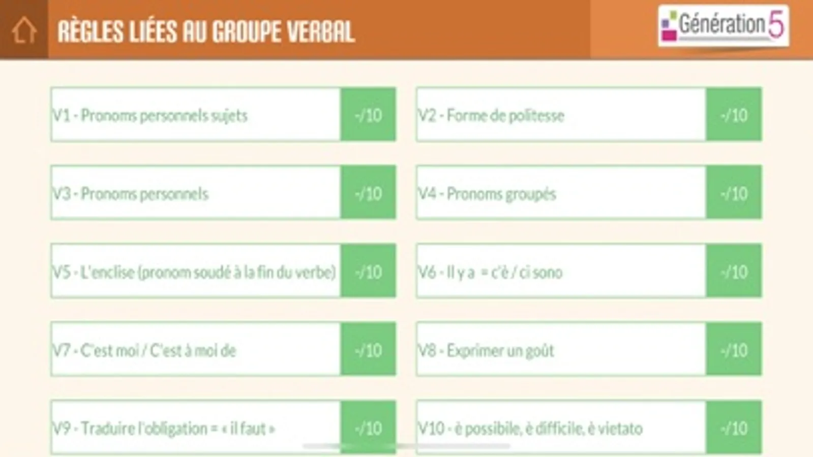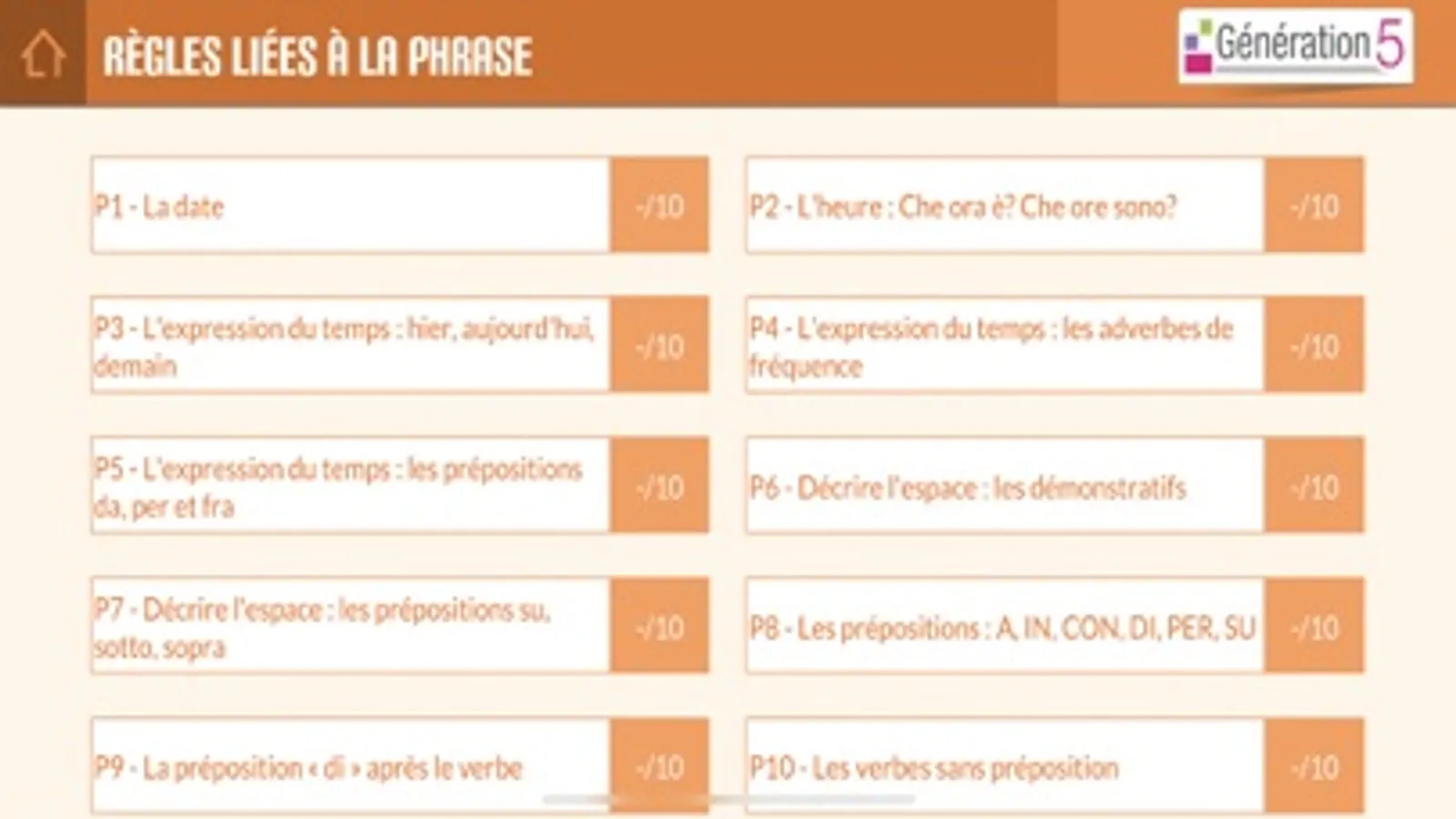 Cette application propose des exercices interactifs pour réviser et consolider ses connaissances en italien.