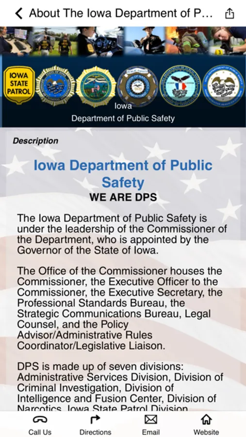On behalf of the Iowa Department of Public Safety, welcome to our app. This app is for the employees and family members of the Iowa Department of Public Safety as well as the community it serves. It contains information about our department as well as safety and crime prevention tips and fire and safety tips. Iowa Department of Public Safety employees will have access to a full range of wellness tools.