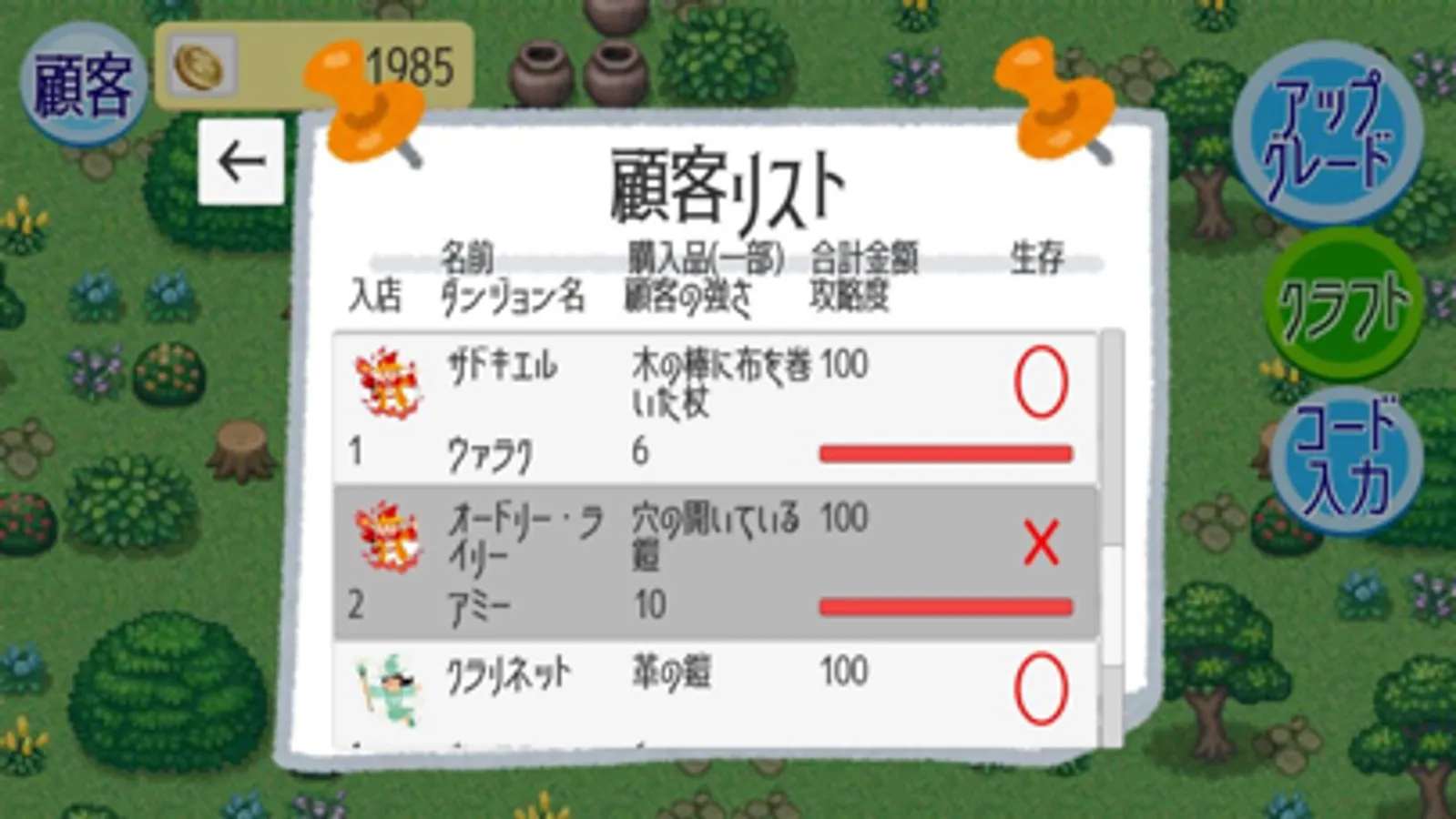 基本的にはアイテムを冒険者に売っていく経営シミュレーションの遊びです。