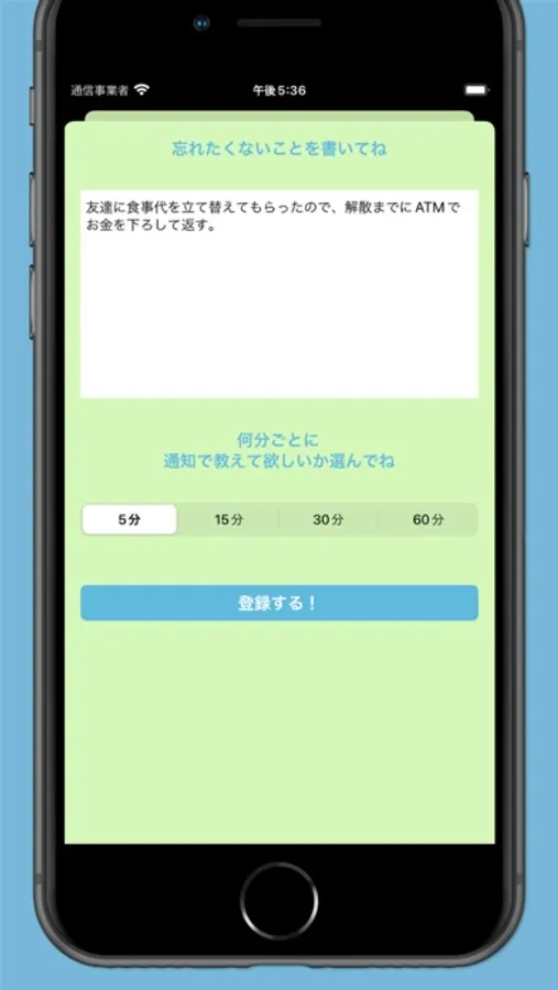 本アプリは『すぐに対応しなくてはならない急用』をうっかり忘れてしまった。自分は物忘れがひどい…と感じている方のために生まれました。
