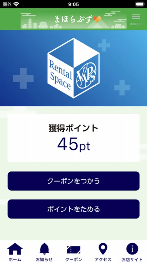 レンタルスペース・物販・喫茶・サロン・講座などでポイントをゲットしたり、ポイントを貯めてクーポンを使用できる機能があります。