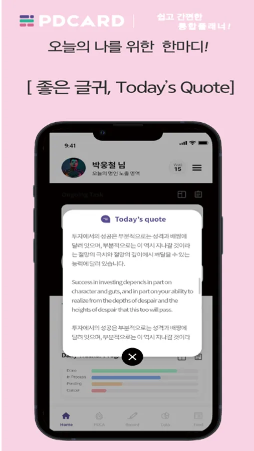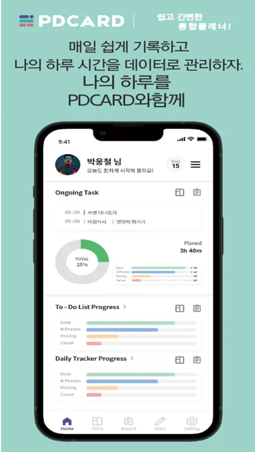 - 일일, 주간, 월간, 연간 진행률 확인