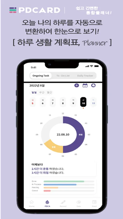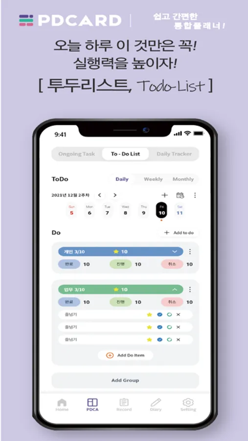 - 일일, 주간, 월간 진행률 확인