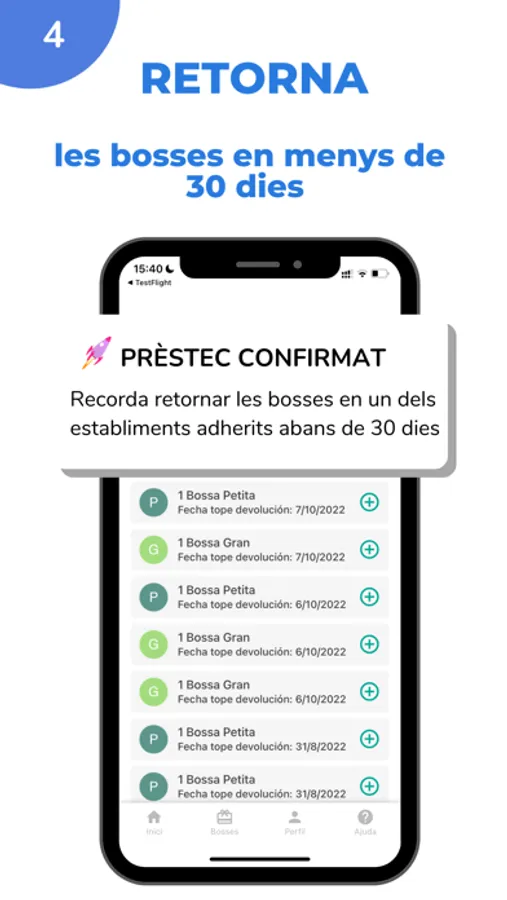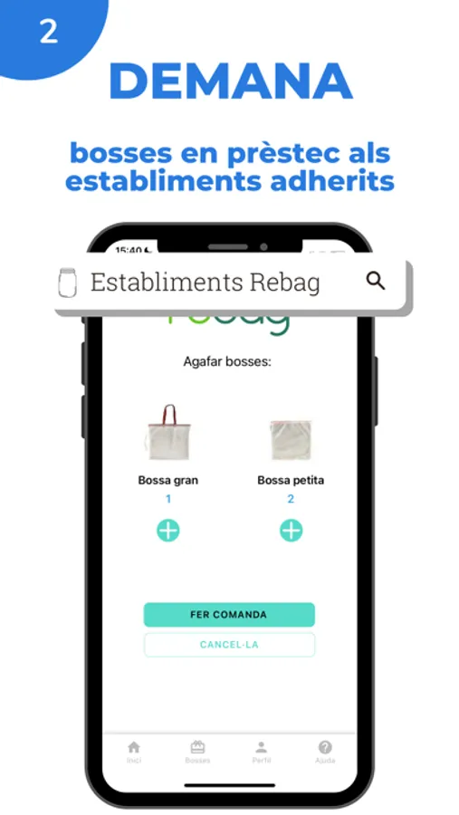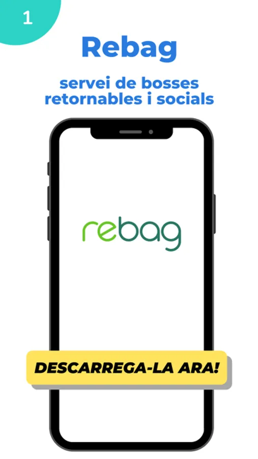 A través de Rebag pots agafar en prestec diferentes bosses en els establiments adherits al servei. Com funciona? 1.Descarrega la App de forma gratuita2.Registre't amb el teu email i contrassenya3.Quan estiguis en un establiment adherit agafa en prèstec bosses grans o petites