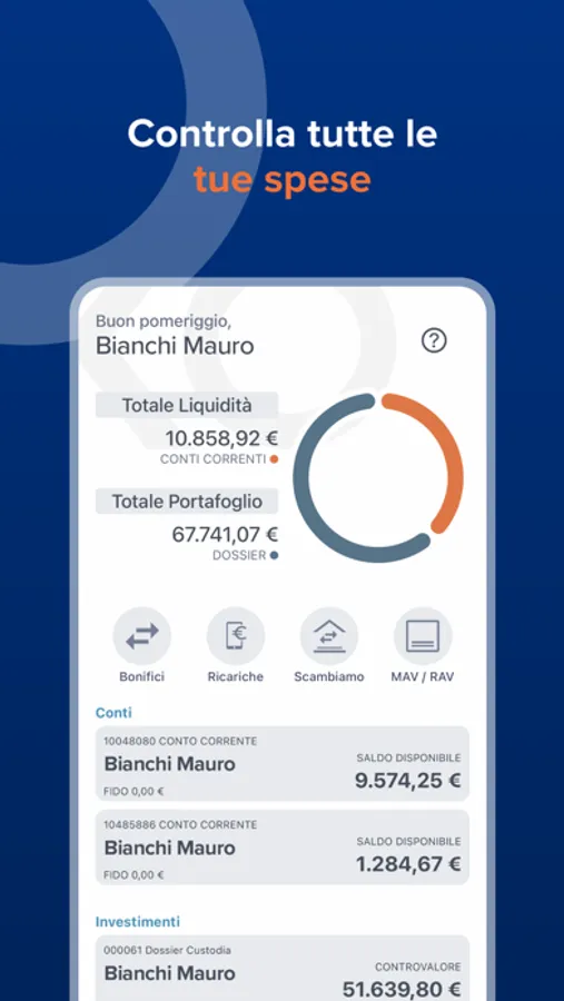 Potrai tenere sotto controllo i movimenti dei tuoi conti, i finanziamenti, gli investimenti, l’utilizzo delle tue carte di debito ed eseguire quotidianamente operazioni con pochi e semplici click.