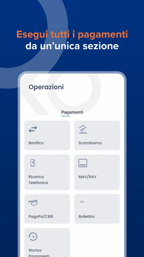 • Pagare Bollettini CBILL/PAGOPA e Bollettini Postali con la fotocamera.