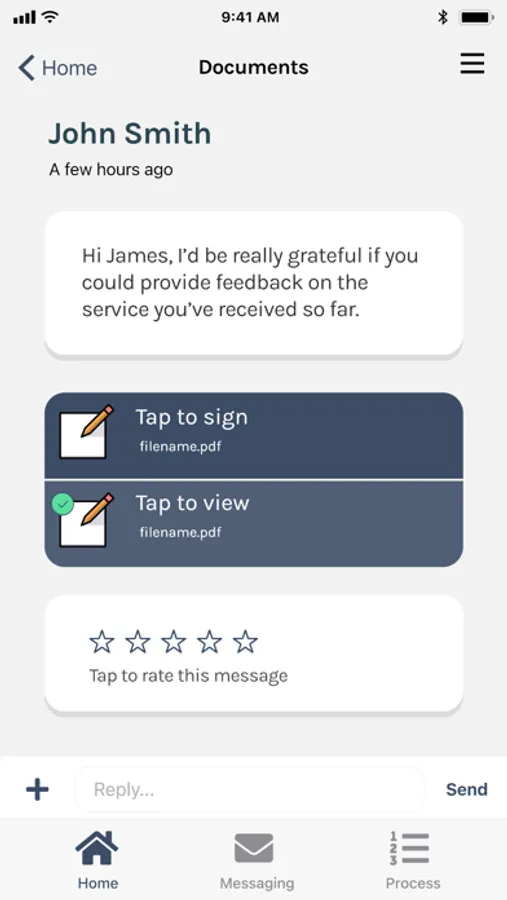 Communicate with your nominated representative, 24 hours a day by sending messages and photos whenever you like. Your lawyer can also send messages to you which will be kept neatly within the app, recording everything permanently.