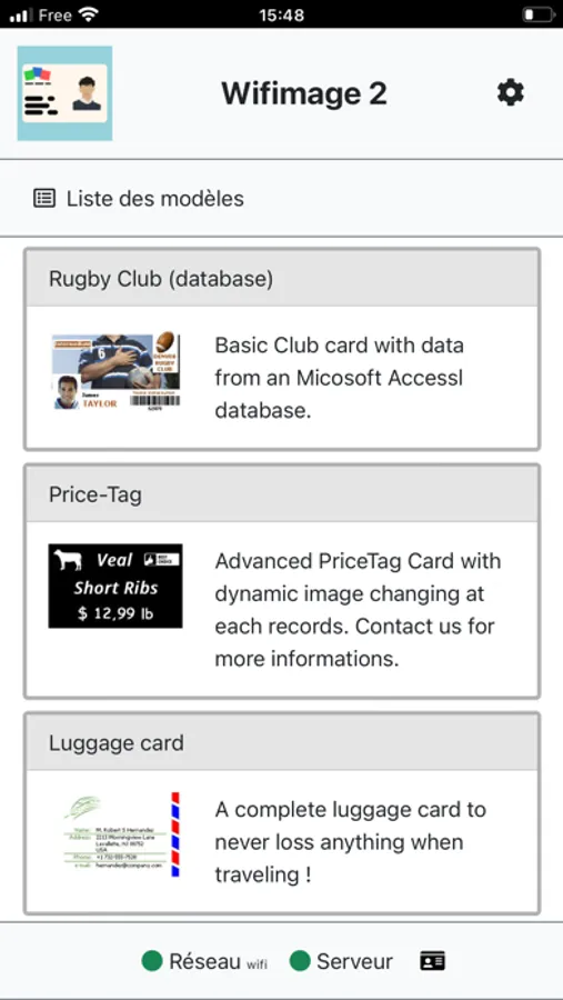 Wifimage 2 allows you to print directly with your smartphone any card that you have previously created : Price Tag, Personal or Professional card, Sport Card etc.