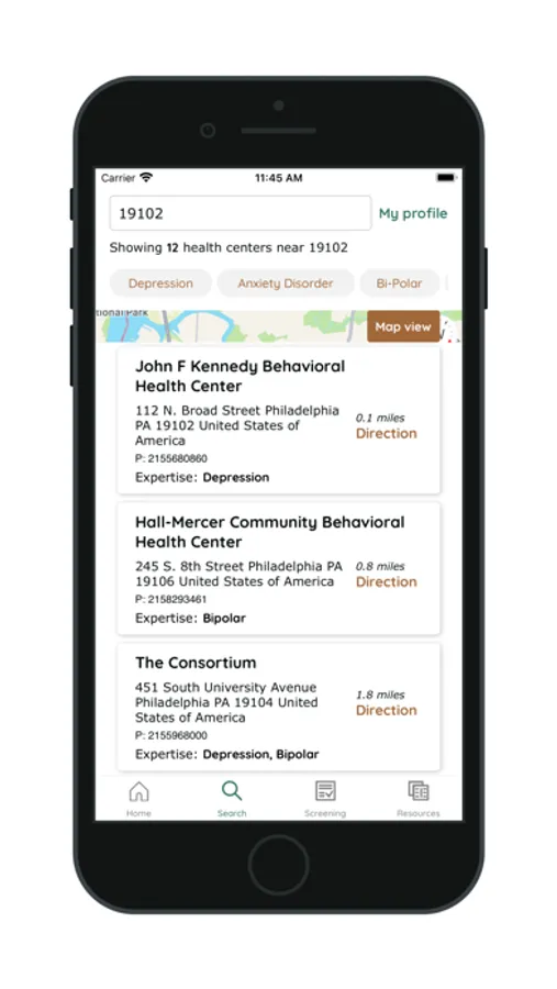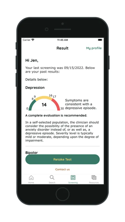 - Free mental health screenings with immediate results