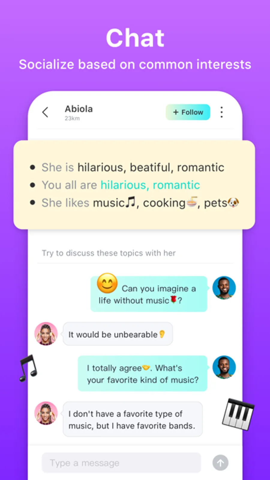With our powerful matching feature, Funkie matches you up with millions of new faces who share common interests. You can easily connect with them to discuss and share topics of interest.