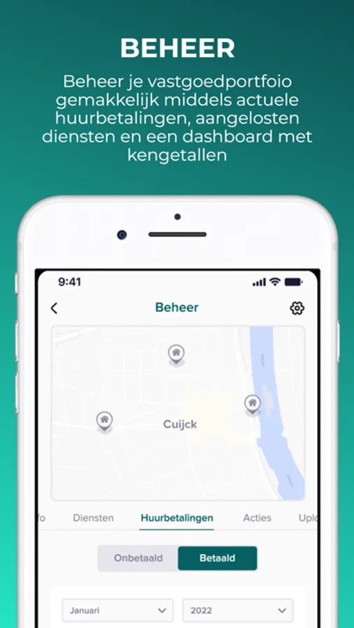 Natuurlijk heeft het BEHEER van je vastgoedbeleggingen alle aandacht. Je wil zonder zorgen kunnen genieten van je rendement. Door een koppeling met je bankrekening heb je continue inzicht in je kasstroom en tijdige huurbetaling. En via het dashboard heb je een compleet overzicht. Van incasso tot rendement. Van de waarde van je portefeuille tot diverse andere kengetallen. En komt er een woning leeg? Dan kan je deze direct weer promoten via VERHUUR. Of wil je verkopen? Biedt het gratis off market aan bij VIND waar je beslist de beste kopers vindt.