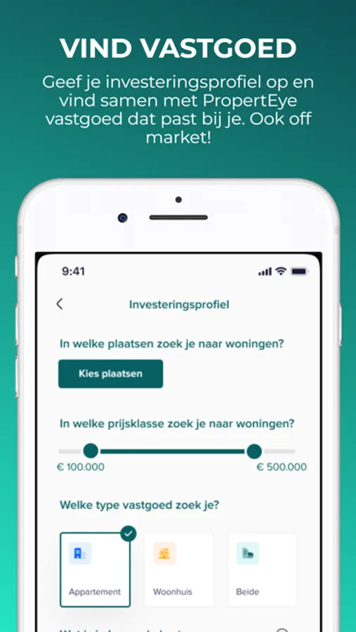 Met Properteye app vind je alles wat je nodig hebt om succesvol je vastgoedportefeuille uit te breiden, te beheren en te verkopen.