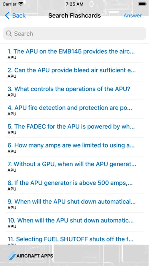 •Choose any aircraft system from a drop down menu and easily study technical questions about the airplane.
