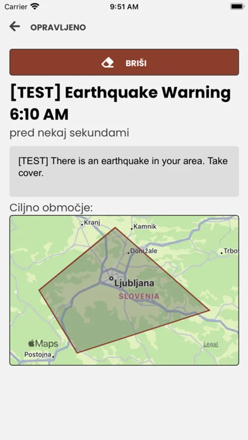 The mobile application allows you to receive alerts or alarms about imminent dangers of natural and other disasters in the territory of the Republic of Slovenia. Informing and alarming people, which comes under the jurisdiction of the Administration for Civil Protection and Disaster Relief of the Republic of Slovenia (ACPDR) is one of the services of the emergency call 112 – Reverse 112, which complements other services to ensure greater safety of people.
