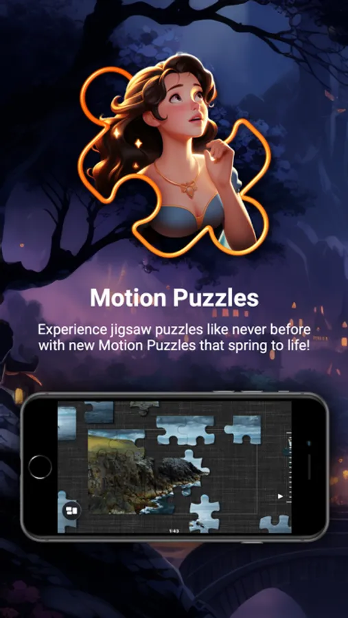 Welcome to Motion Jigsaw Puzzles, the brand new next-generation puzzle game! With Motion Jigsaw Puzzles, you can build stunning moving pictures and videos that will take your puzzle-solving experience to a new level. Our game features state-of-the-art technology that allows you to solve puzzles to create mesmerizing animations that will leave you spellbound. You can choose from various themes and designs, from breathtaking landscapes to adorable animals. With Motion Jigsaw Puzzles, you will never get bored. Our game is perfect for all ages, and it's a great way to spend quality time with your family and friends. So why wait? Download Motion Jigsaw Puzzles now and start creating your own magical masterpieces!