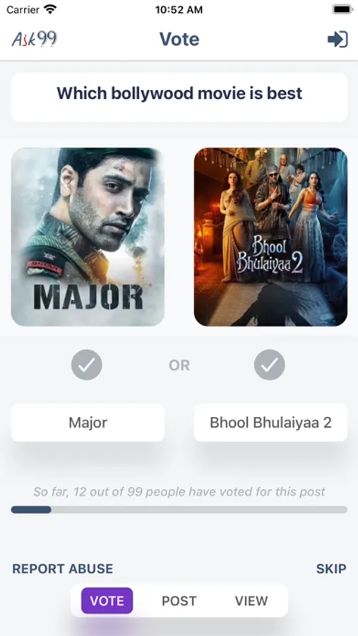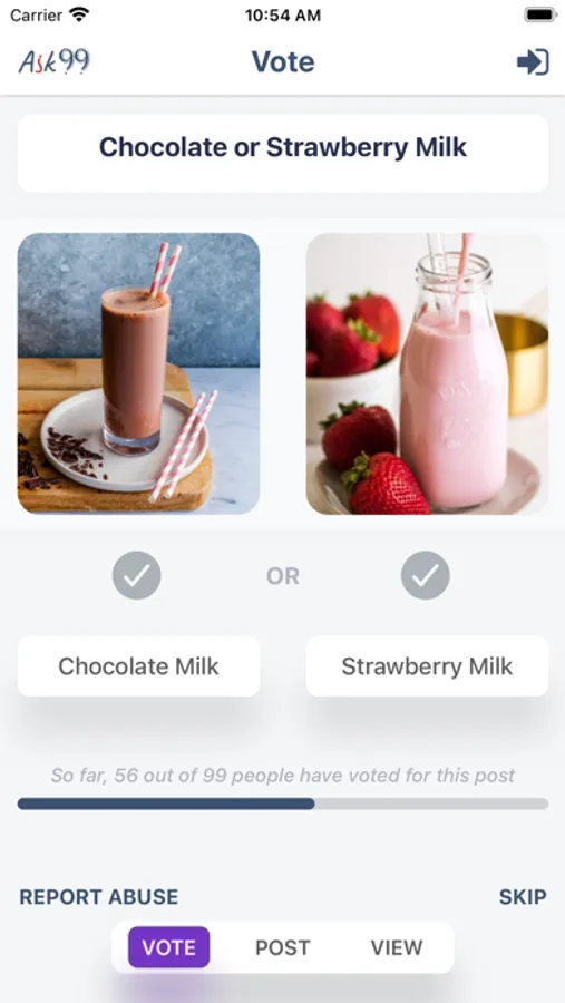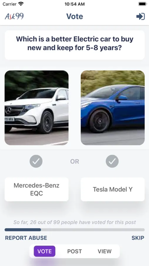 Ask99 - the app that takes your question and shares it to other anonymised users just like you, who will simply choose the option they prefer, and we’ll present you with the majority answer as soon as the last person (the 99th) has cast their vote.