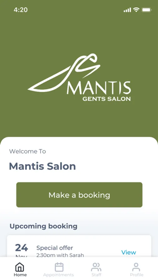 The Mantis Salon app makes booking your appointments and managing your loyalty points even easier. You're just a few taps away from feeling good and looking great!