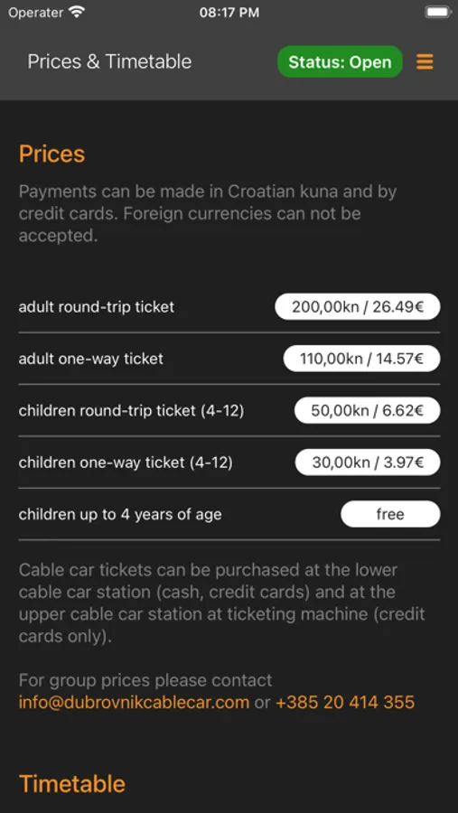 The GoCableCar app allows you to receive real-time status updates from the Dubrovnik Cable Car and offers key information about the cable car and activities at and around the upper cable car station.