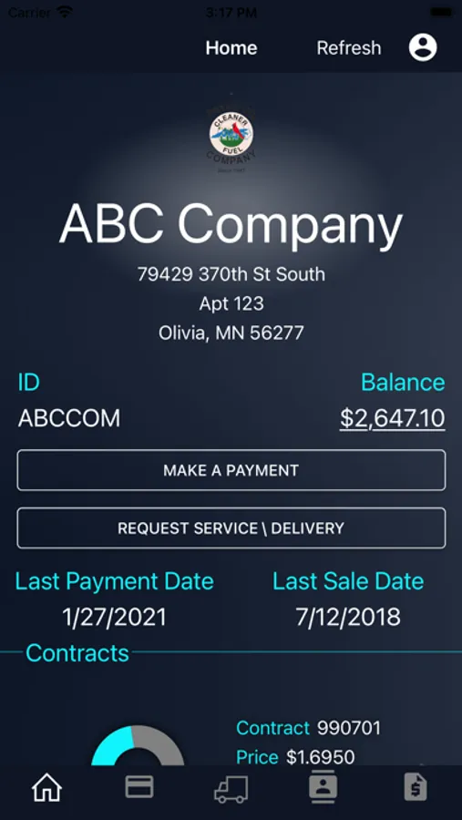Information at your fingertips! This app gives you direct access to your account balance, location and contract information. It also gives you the ability to store and process payment and request service work and deliveries directly through the app.
