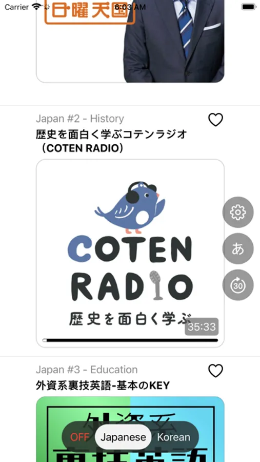 Turn on zzzCast and you can listen to foreign languages. After that, there are only two things to do: listening and switching channels. No complicated functions, no excessive text. You can use it even if you close your eyes and lie in bed. zzzCast is a podcast player that focuses on language and channel switching.