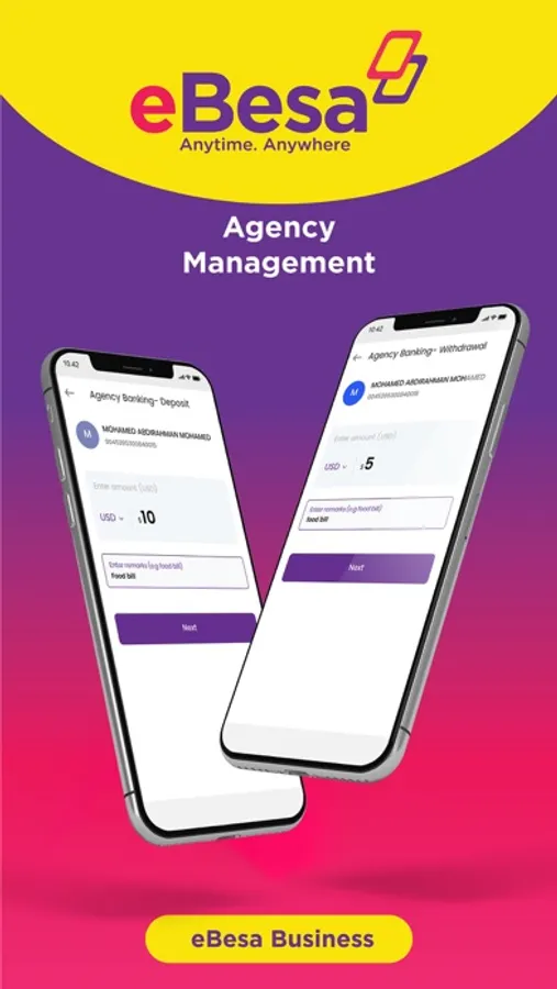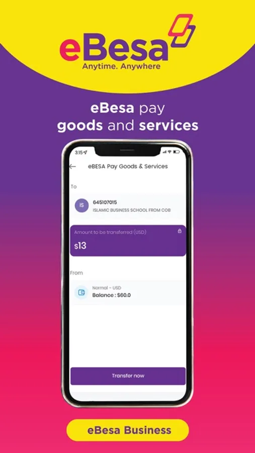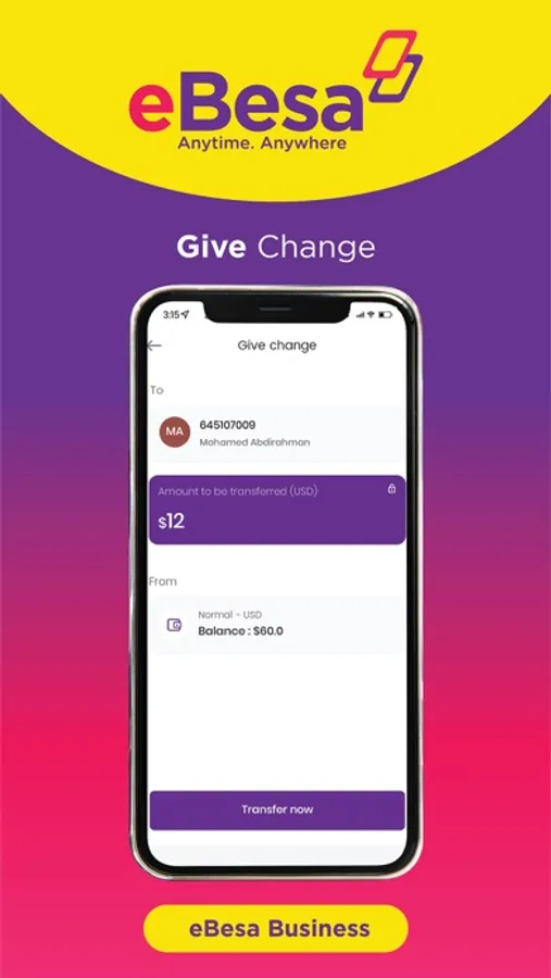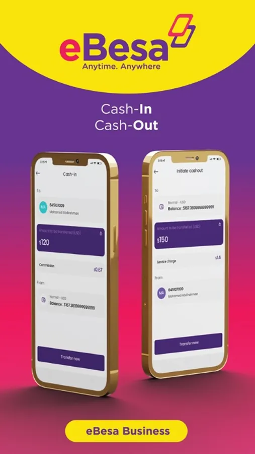 Experience convenience, simplicity and security in life with eBesa App by accessing and spending your money Anytime. Anywhere! With eBesa, you can do core Mobile Money transactions such as sending and receiving money locally and internationally, buying airtime and data paying for goods and services & bills. Additionally, eBesa App offers much more enhanced and integrated financial services among them linking and managing bank accounts, sharia compliant loans and virtual debit Cards to mention a few.