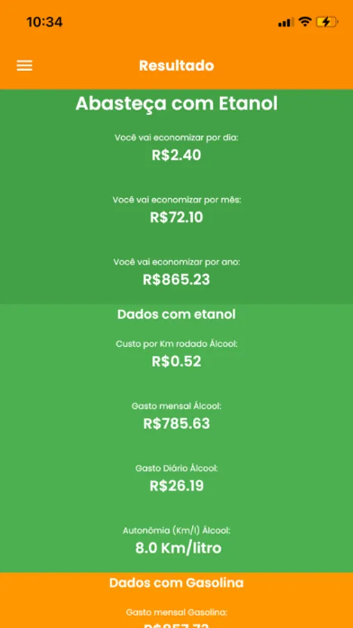 Abra o app, digite os valores e pronto! Você já sabe qual o combustível com melhor custo-benefício!