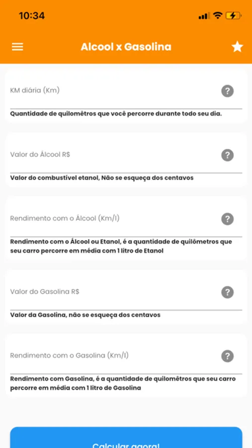 Chegou no posto? Abra o app e calcule rapidamente antes de ser atendido pelo frentista, e economize!