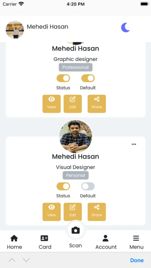 Connect wherever you go. Your Tcard digital business card can be easily shared with anyone you meet even if they don’t have the app. Creating your virtual business card takes under two minutes and recipients don’t need the Tcard app installed to receive your details or share their details with you.