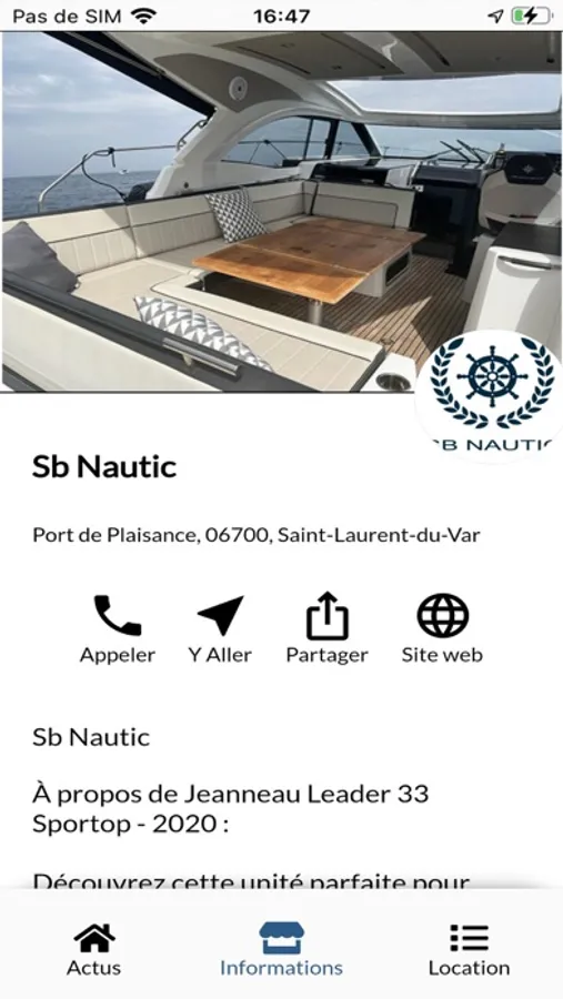 Dans cette application SbNautic, vous pourrez réserver de belles journées sur un Jeanneau Leader 33 Sportop
