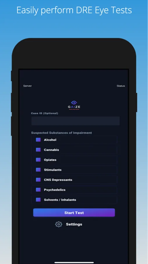 The Gaize app allows users of the Gaize headset to perform automated Drug Recognition Expert eye tests. Please contact Gaize if you would like to sign up by emailing support@gaize.ai or visiting www.gaize.ai.