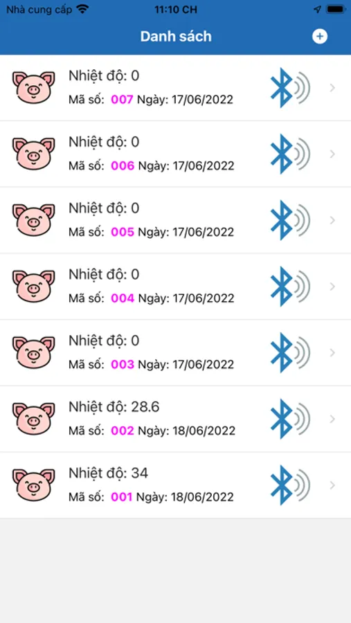 Phần mềm theo dõi sức khỏe chăn nuôi Heo, kết nối với thiết bị Beacon để lấy về thông tin nhiệt độ cơ thể và khoảng cách