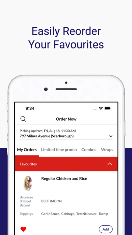 Customize and place your order, pickup from a nearby store without waiting in line, or have it delivered straight to your door. Add your favourite items for quick ordering.
