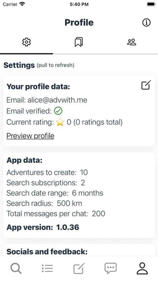 - report adventures and contact requests to flag app misuse and keep the community safe