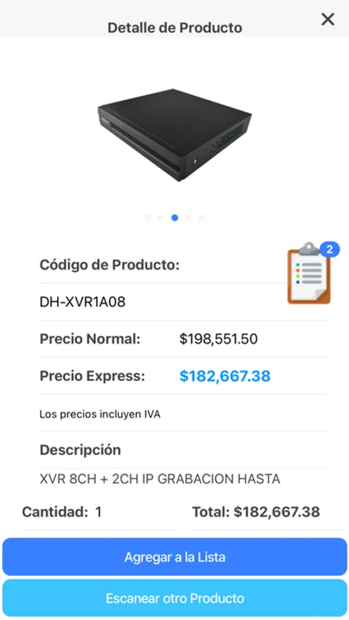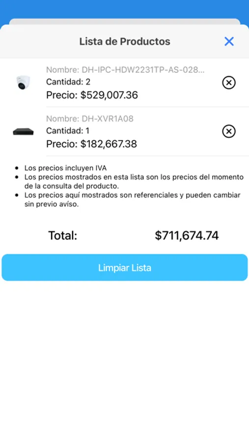 ** Los precios mostrados en la aplicación incluyen IVA, son referenciales y pueden variar sin previo aviso.