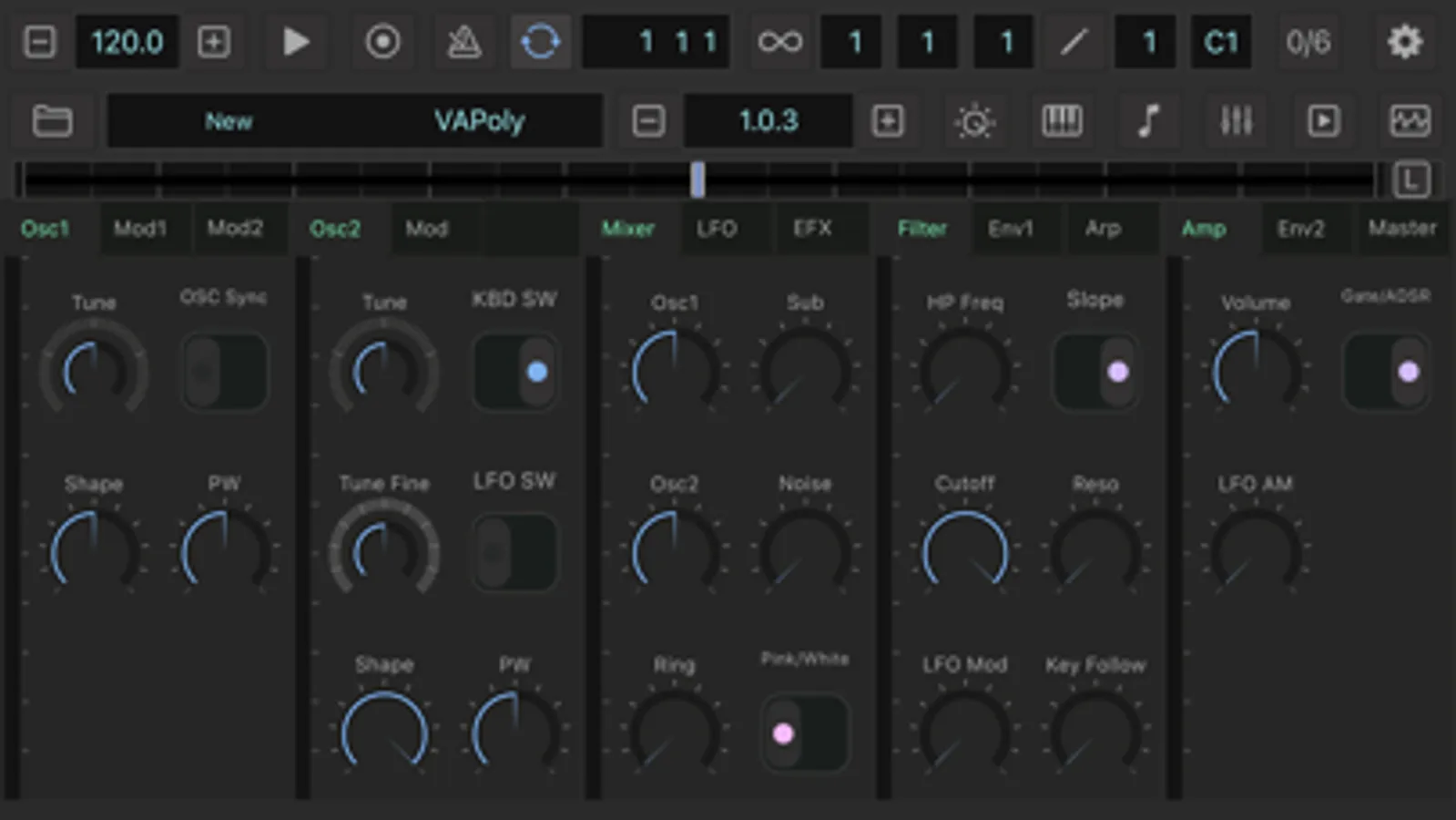VAPoly is a virtual analog 8 voice polyphonic synthesizer for iPhone, iPad and Mac. VAPoly features built-in effects, built-in sequencer, parameter automation, oscilloscopes and spectrum analyzer. VAPoly works as a stand alone or as an Audio Unit Extension (AUv3). Stand Alone supports Ableton Link, Bluetooth MIDI, MIDI IN/OUT and audio file export.