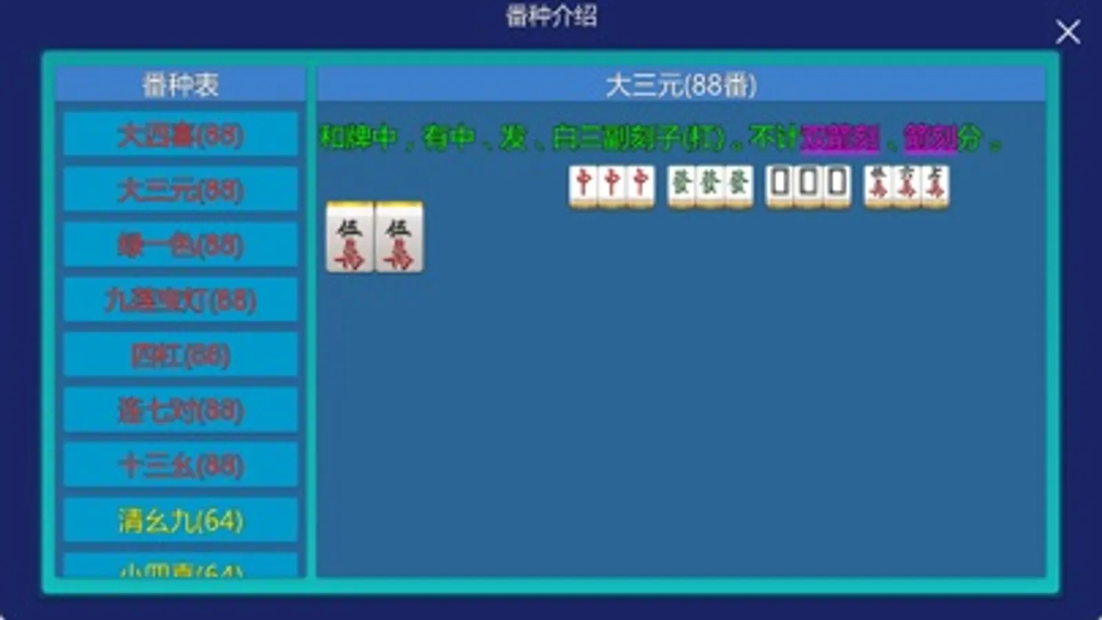 虽然本软件只包含了工具,但线上学习,线下实战都是足够的。如果出现番种计算错误,或者有什么好的意见或建议,也请直接发在评论里。谢谢!最后,祝各位学习快乐。