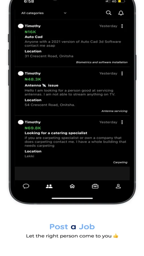 This mobile application solves this problem by being strictly about an individual’s business. Also, if you as an individual, decide that you need help with some type of business and don’t know where to find the right person for the job, you can easily post a job in the app and the right people will find you and try to communicate with you.
