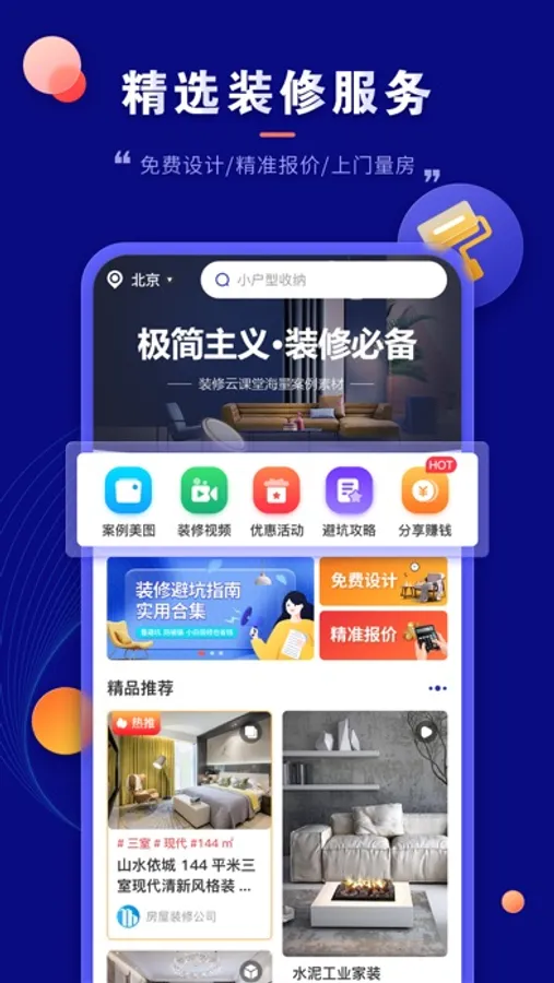 房子装修设计是一款让您装修有灵感、预算不超支、开工不被坑、施工不迷路的装修软件。装修怕麻烦,就来装修云课堂,帮您装的省心,让您住的舒心。
