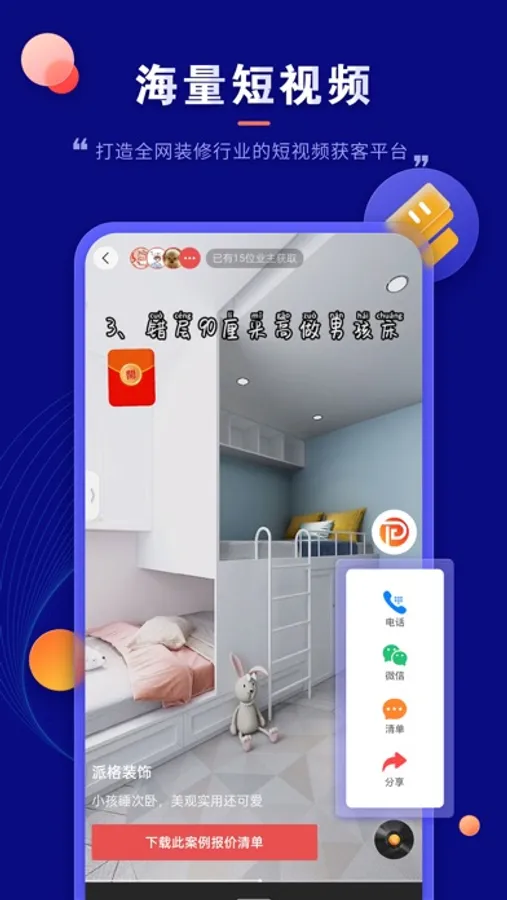海量装修视频,只有您想不到的,没有您找不到的,全方位帮您了解装修的各个步骤、施工流程、工艺,让您省心装修。