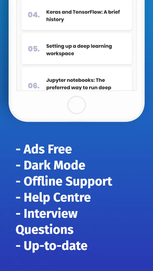 Learn Deep Learning with Python 3 app introduces the field of deep learning using Python and the powerful Keras library. As you move through this app, you’ll build your understanding through intuitive explanations, and clear examples. You’ll quickly pick up the skills you need to start developing deep-learning applications. Python is a general-purpose high level programming language that is widely used in data science and for producing deep learning algorithms. This app contains all the basic to advanced concepts of deep learning like neural networks, computer vision, how to work with tensorflow and keras library and it will turn you into a confident deep learning expert.