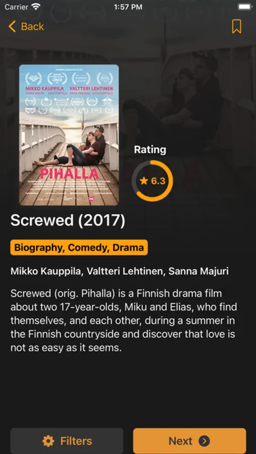 Random movie generator and movie finder App with a huge movie database, filters by genre, rating, year and trailers. Don't know what to watch? Open the App and find a lot of related movie suggestions.