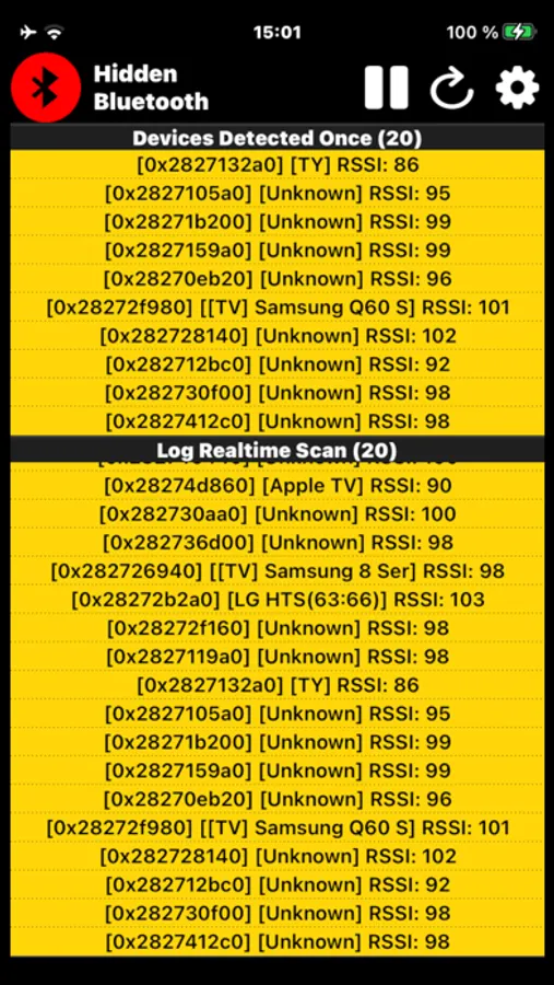 - This tool scans all type of BLE devices like phones, TVs, watches, speakers, AirPods, fitness devices, medical devices, etc.