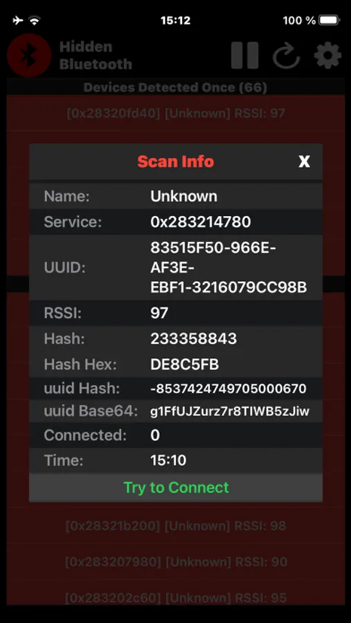 - Get all the Bluetooth scanning information (RSSI, Name, ID, Peripheral UUID, etc)